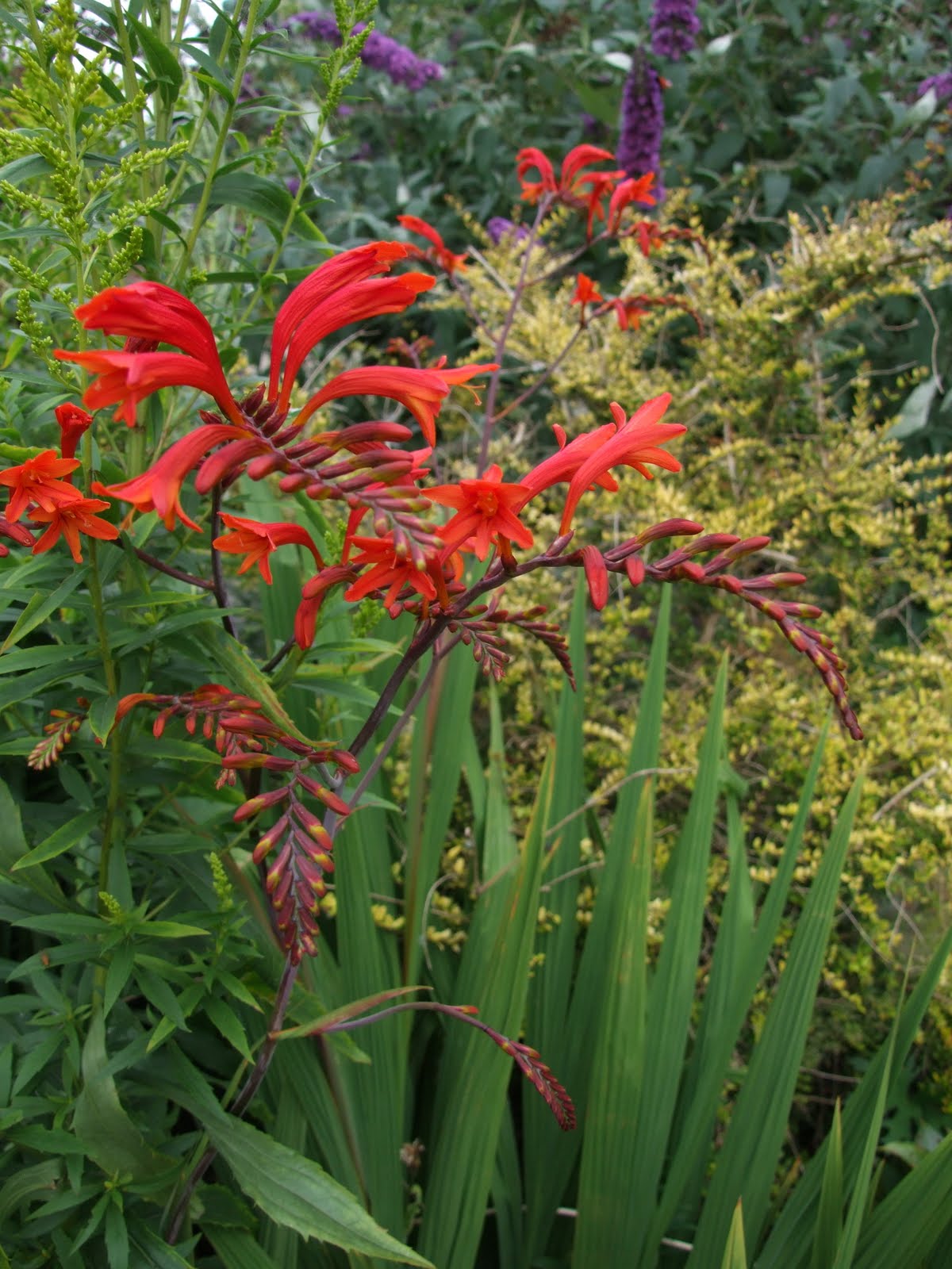 Back in the garden proper vibrant vermillion Crocosmia live happily next to the intense violet of this Buddlia. It's a dangerous combination but I love it almost as much as the butterflies do.